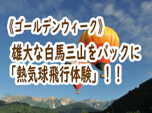 まだまだ残雪の残る白馬三山など北アルプスの雄大な山々を間近に感じられる約5分間の熱気球係留体験フライト!! 熱気球体験がセットになったお得なプランです。 予約ページはこちら